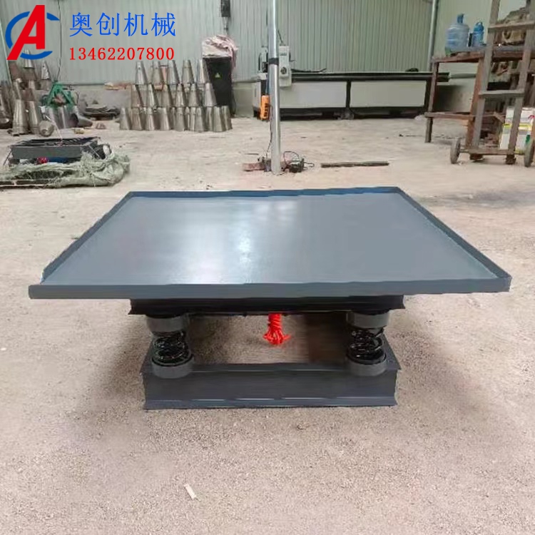 振動平臺(振動臺)又叫振實臺,主要用于生產流程中用于把顆粒、粉狀物料從散裝到塊狀、型狀等形式的轉變,...